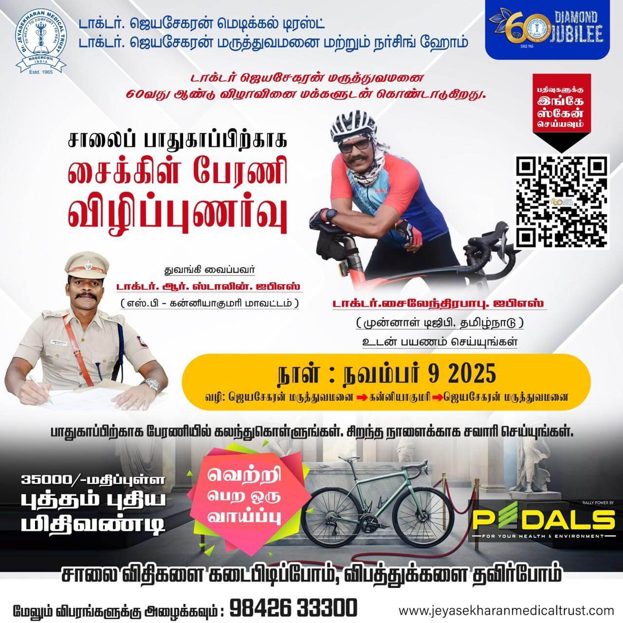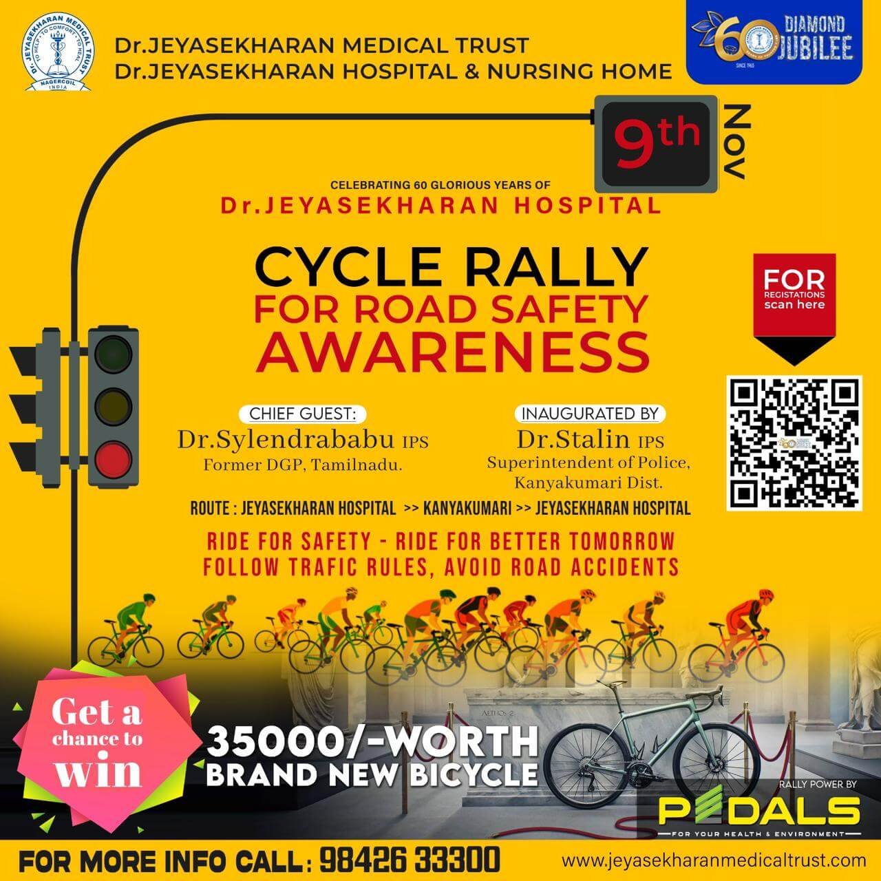 The Road Safety Awareness Cycle Rally by Dr. Jeyasekharan Hospital, Nagercoil