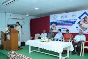 The Chief Guest Dr. N.Ramakrishnan, AB (Internal Medicine, Critical care, Sleep Medicine and Obesity Medicine), Founder & Managing Director, TACT Academy for Clinical Training was introduced by the Academy Chairperson Dr.Renu Devaprasath, DNB (Anesthesia). He delivered the chief guest address. He shared his experience in stimulation based training and his motive in the initiation and inception of TACT Academy, India’s first simulation based training centre. In his speech he emphasized the importance of simulation based training in lifesaving skills and motivated others to learn and utilize the skills in emergency situations.