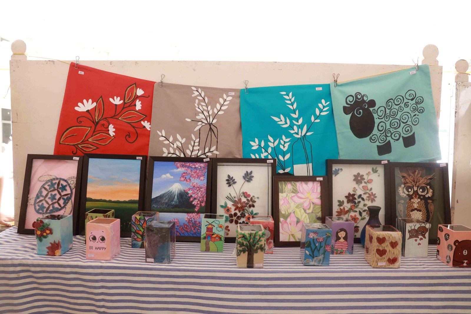 The exhibition featured a diverse range of colour pencil artworks, Quelling artworks, Acrylic painting on canvas, Hand painted pen holders & pots, Block printed Tote Bags, Painted Cushion Covers, Clay art Key Chains, Handmade Greeting cards. Each artwork displayed a unique blend of colours, intricate details and artistic techniques, demonstrating the creativity and craftsmanship of the students.