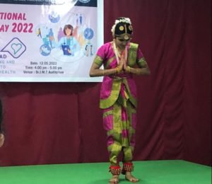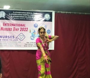 Carnatic welcome dance was performed by Ms.Managala Nimitha, II Year B.Sc. Nursing Student as a sign of welcoming the gathering. Poem recitation was done by Ms.Priya from the ICU Complex. Group Song was sung by nursing staff who had won the first Prize in the International Nurses day competition. Similarly role play of the winning team who had secured first place in the International Nurses Day competition was enacted by the staff of the ICU team.