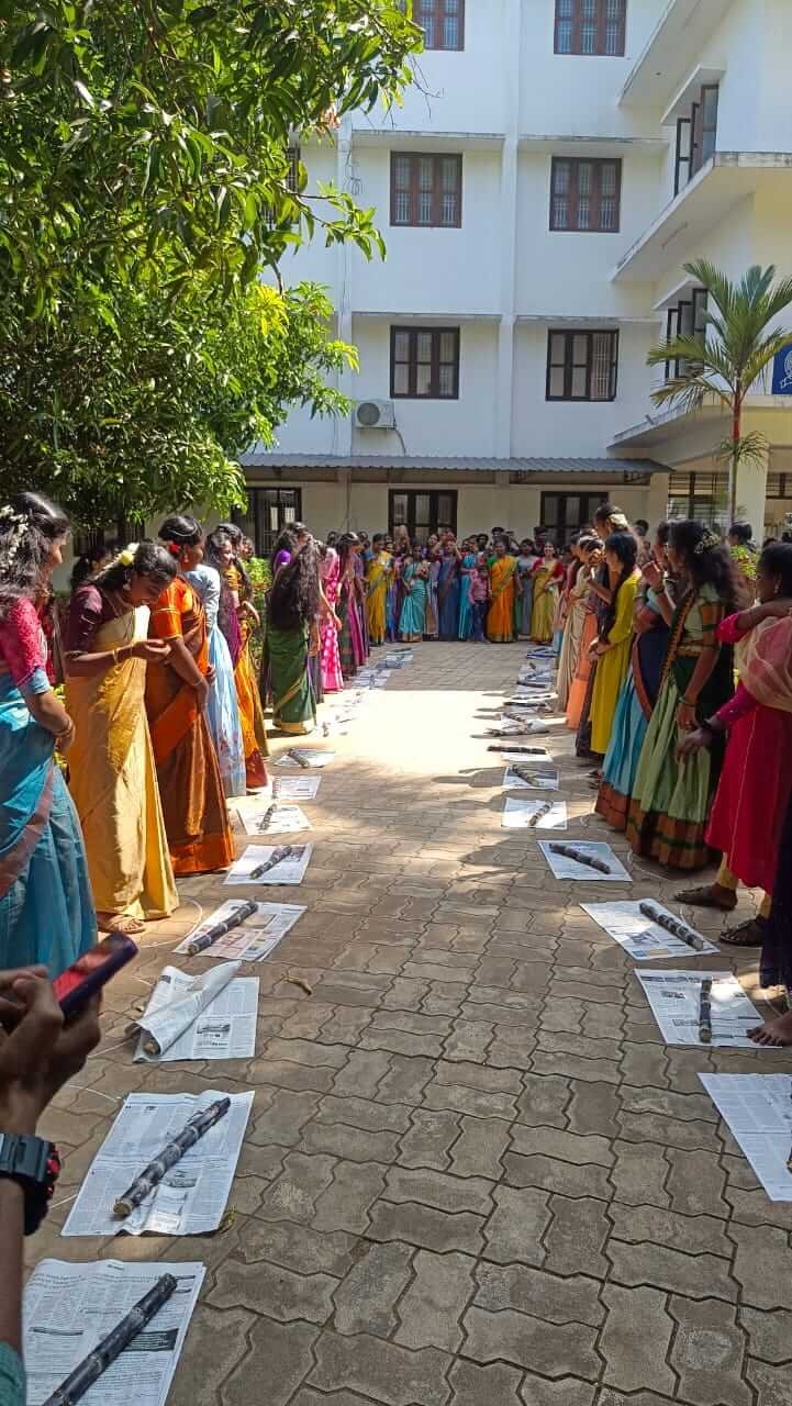 Pongal was prepared by final year B.Sc and DGNM Nursing students. The students participated in musical chair and cane eating competitions were conducted for the students.Students participated enthusiastically in all the activities planned on the day ofPongal. Students and faculty involved actively in the game. At the end of the celebration,Pongal and sugarcane was served to everyone.