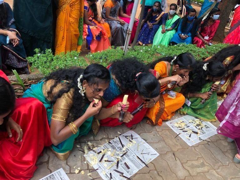 The events such as musical chair, cane eating, uri adi, tug of war game, pot painting and rangoli competitions were conducted for the students. Students participated enthusiastically in all the activities planned on the day of Pongal. COVID appropriate behavior was adhered during the celebration by the students and staff. Lucky corner game was arranged for all the teaching and non teaching staff of our college, all the faculty involved actively in the game. At the end of the celebration, Pongal and sugarcane was served to everyone.
