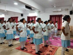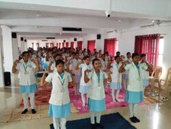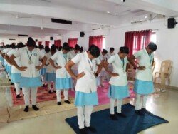 The B.Sc. Nursing III year students Ms.MSushma, Ms R Rashika and Ms. RArthisha Tharshini, had performed a few yoga Asana for the students. After that, the yoga pledge was led by Ms.Serlin, II year DGNM.