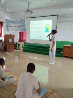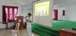 A PowerPoint presentation on “Introduction to Yoga” was given by Ms.SSerlin II year DGNM Nursing student. She presented the meaning of yoga, the theme of yoga, the meaning of the logo, the history of yoga, research evidence on yoga, and the health benefits of yoga. All the B.Sc. Nursing IV semesters students and DGNM I & II Students of Dr. Jeyasekharan College of Nursing participated in Yoga Day.