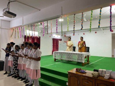 The Program commenced with Prayer song by the College Choir followed by welcome Address by Ms.Varsha B.Sc. DT II Year. The teachers were welcomed with flowers and gifts. The Correspondent of the college Mrs. BeenaSabu congratulated the teachers and acknowledged the sincere efforts they put in every day and expressed her gratitude to teachers by presenting a small gift. The Course-Coordinator Mrs. Jeyalakshmi gave a valuable speech on the role of teachers in shaping the society and inspired the students by her motivational speech and extended her teachers day greetings to her team.
