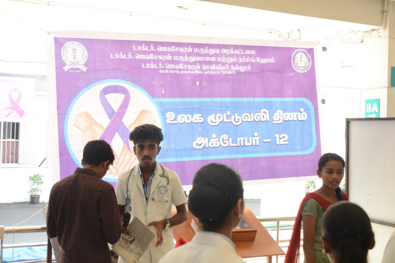We had celebrated world Arthritis day on 10th October at 10.30 am to 11.30 am. It was organized by Student Nurses Association , Dr.Jeyasekharan college of Nursing, Nagercoil.