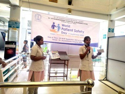 On the mark of World Patient Safety Day, Dr.Jeyasekharan College of Allied Health Sciences with collaboration of Dr.Jeyasekharan Hospital and Nursing Home organized an event on 15/9/2023 and 16/9/2023 with the theme “Engaging Patients for Patient Safety”.